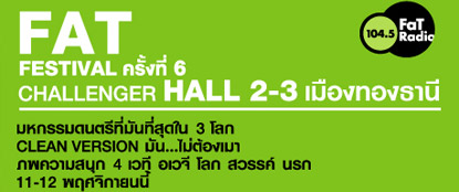 FAT Festival มากันอีกแล้ว ในครั้งที่ 6 กับงานดนตรีสุดมันสุดจิตนาการแห่ง 3 โลก 11-12 พฤศจิกายน 2549 Challenger Hall 2 -3 เมืองทองธานี งานมหกรรมดนตรีในร่มในพื้นที่ใหญ่ที่สุด พื้นที่ สี่หมื่นตารางเมตร